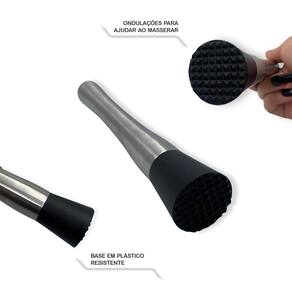 Ideal para preparar drinks profissionais com facilidade Versátil: quebra gelo, amassa temperos e macera frutas Feito em Aço Inox, garantindo resistência e durabilidade Design elegante que complementa sua cozinha Base revestida em plástico para evitar danos ao copo