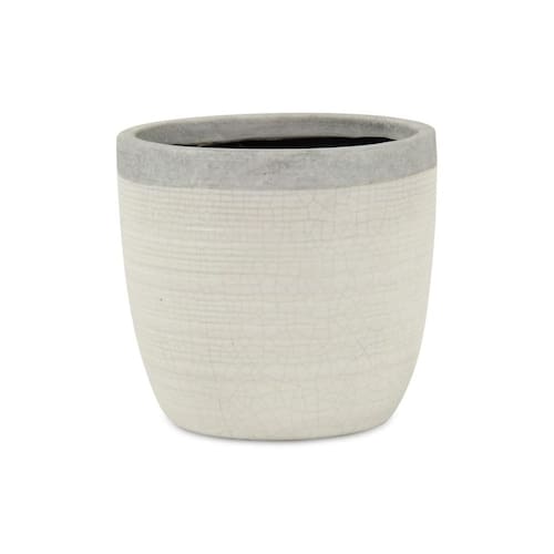 Maceta vidriada estilo mosaico blanca Pot Cheung 5777L de 14 x 13 x 10 cm