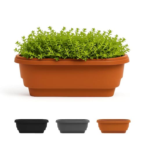 Macetero Bloem Deck para barandilla de balcón: 24" - Terracota. Capacidad: Acepta 15 litros de plantas y tierra. Construcción duradera: Fabricado con resina protegida contra rayos UV para resistencia al desvanecimiento. Resistente a la intemperie: Se adapta a barandillas de 8,25 cm a 9,5 cm de ancho y 13,35 cm a 14,6 cm de alto. Mantenimiento sencillo: No se requieren herramientas para el ensamblaje o limpieza. Hecho en EE.UU.: Orgullosamente fabricado localmente.