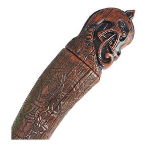 O machado é feito em aço e seu cabo revestido de resina com detalhes em couro, desenhos/runas Neon na Lamina que brilha na luz negra ao ser exposto a luz negra por cerca de 1 minuto ele absorve a luz, e quando fica no escuro ganha um Brilho no Tom azulado. Cada detalhe e cada acabamento foi feito com muita criatividade para tornar este machado um item único e de uma qualidade premium.
