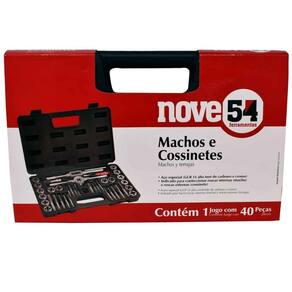 1 Jogo de machos e cossinetes composto por maleta plástica com 40 peças, sendo: 1 peça de cada cossinete (MA - milímetro rosca grossa) de 1" nas medidas: M3 x 0,50 mm, M4 x 0,70 mm, M5 x 0,80 mm, M6 x 1,00 mm, M7 x 1,00 mm, M8 x 1,25 mm, M10 x 1,50 mm e M12 x 1,75 mm. 1 peça de cada cossinete (BSW / UNC- polegada rosca grossa) de 1" nas medidas: 1/8" 40 fios, 5/32" 32 fios, 3/16" 24 fios, 1/4" 20 fios, 5/16" 18 fios, 3/8" 16 fios, 7/16" 14 fios e 1/2" (UNC 13 fios).1 cossinete (NPT - polegada rosca cônica) de 1" na medida 1/8" 27 fios.1 peça de cada macho (MA - milímetro rosca grossa) nas medidas: M3 x 0,50 mm, M4 x 0,70 mm, M5 x 0,80 mm, M6 x 1,00 mm, M7 x 1,00 mm, M8 x 1,25 mm, M10 x 1,50 mm e M12 x 1,75 mm.1 peça de cada macho (BSW / UNC)- polegada rosca grossa) nas medidas: 1/8" 40 fios, 5/32" 32 fios, 3/16" 24 fios, 1/4" 20 fios, 5/16" 18 fios, 3/8" 16 fios, 7/16" 14 fios e 1/2" (UNC 13 fios).1 macho (NPT - polegada rosca cônica) 1/8" 27 fios.1 chave manual para macho (vira-macho) com capacidade de 1/16" a 1/2" ou 3 mm a 12 mm.1 chave manual para cossinetes (porta-cossinete) de 1" ou 25,4 mm, 1 chave manual ajustável (vira-macho tipo T) com capacidade de 1/8" e 5/32" ou 3 mm e 4 mm.1 haste de aperto para chave manual ajustável (vira-macho tipo T), 1 chave de fenda 1/8" x 2", 1 pente de rosca (cálibre de rosca) com 16 laminas, sendo: 7 em milímetros (M3 X 0,50 mm, M4 X 0,70 mm, M5 X 0,80 mm, M6 X 1,00 mm, M8 X 1,25 mm, M10 X 1,50 mm , M12 X 1,75 mm) e 9 em polegadas, 1 de 1/8" rosca NPT 27 fios e 8 rosca BSW (1/8" 40 fios, 5/32" 32 fios, 3/16" 24 fios, 1/4" 20 fios, 5/16" 18 fios, 3/8" 16 fios, 7/16" 14 fios e 1/2" 12 fios).