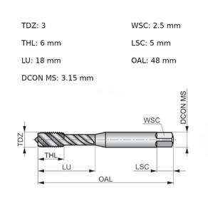 Produto: Macho máquina aço rápido canal helicoidal M3 x 0,5 mm E557M3 Marca: Dormer Descrição: O Macho Máquina Aço Rápido Canal Helicoidal M3 x 0,5 mm da Dormer é desenvolvido especialmente para oferecer superioridade em operações de rosqueamento, este produto é uma escolha ideal para profissionais que buscam resultados excepcionais em suas tarefas. Confeccionado em Aço Rápido HSS e com um acabamento brilhante, este macho apresenta uma durabilidade elevada e resistência contra o desgaste, garantindo uma vida útil longa mesmo sob uso intensivo. A hélice de 35° é otimizada para a remoção eficaz de cavacos em aplicações de furos cegos até 2xD, minimizando o risco de quebras e garantindo roscas limpas e precisas. Características: • Dimensões conforme padrão ISO 529, garantindo compatibilidade e padronização. • Tolerância de classe 6H, proporcionando roscas precisas e um ajuste ideal dos parafusos. • Chanfro de forma C e fio de rosca de semiacabamento, melhorando a inicialização da rosca e reduzindo o esforço manual. • Haste de 3,15 mm com encaixe quadrado de 2,5 mm, assegurando fácil montagem e manuseio segura na ferramenta elétrica. Com uso recomendado para aplicações de uso geral, o Macho máquina da Dormer adapta-se a diversos materiais, incluindo aços comuns e metais não ferrosos, proporcionando assim uma versatilidade sem igual.Especificações: Medida da rosca do macho mm : M3Passo da rosca: 0,5 mm Material do macho: Aço rápidoTipo do canal do macho: Canal helicoidalTolerância: 6HISO: 529.
