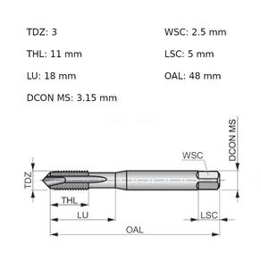 Produto: Macho máquina aço rápido ponta helicoidal M3 x 0,5 mm - E556M3 Marca: Dormer Descrição: O Macho Máquina Aço Rápido Ponta Helicoidal M3 x 0,5 mm da Dormer ideal para quem deseja elevar a eficiência e precisão de suas operações de rosqueamento. Este notável acessório é a escolha perfeita para usuários que exigem o máximo em desempenho e durabilidade. Feito de aço rápido e com acabamento brilhante, nosso macho não apenas resiste ao desgaste, mas também proporciona um corte mais limpo e suave. Com a ponta helicoidal, ele é ideal para rosqueamento de furos passantes de até 2xD em aplicações gerais, minimizando a acumulação de cavacos e aumentando assim a eficiência da operação. Características: • Dimensões padrão ISO 529: Garante compatibilidade e precisão universais. • Haste de 3,15 mm com encaixe quadrado de 2,5 mm: Oferece fácil fixação e transmissão de força eficiente. • Classe de ajuste 6H: Assegura um encaixe perfeito das roscas, ideal para aplicações onde a precisão é crítica. • Chanfro de forma B com fio de rosca cônico: Proporciona uma iniciação de corte mais fácil e uma operação mais suave. • Passo de rosca: Oferece detalhes finos e ajuste exato, essencial para a criação de conexões seguras e confiáveis. Ideal para uma ampla variedade de materiais, o Macho Máquina Aço Rápido Ponta Helicoidal da Dormer é a ferramenta que faltava para impulsionar a qualidade e velocidade de seu trabalho.Especificações: Medida da rosca do macho mm : M3Passo da rosca: 0,50 mm Material do macho: Aço rápidoTipo do canal do macho: Ponta helicoidalISO: 529. Marca: Não Informado