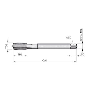 Macho canal reto com chanfro forma C com um chanfro de entrada 2-3xP, para rosca Nacional Unificada grossa UNC 1.1/2" com 6 fios por polegada e classe de tolerância 2B, dimensões de acordo com padrão DIN 376 com haste 32.0mm e quadrado de arraste 24.0mm, feita em aço rápido cobalto HSS-E sinterizado com acabamento brilhante para rosqueamento em furo cego ou passante 1.5xD em usinagem de aço carbono.