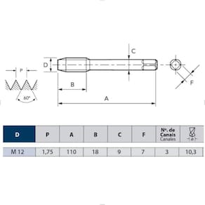 Os Machos para Máquina Aço Rápido HSS-E OSG são de alta qualidade. Possui canal reto e rosca métrica grossa. Indicado para furo passante ou furo cego em material de cavaco curto. Recomendado para usinagem de aço de carbono, ferro fundido, liga de alumínio fundido, cobre, latão, bronze, alumínio laminado, liga de magnésio, liga de alumínio e liga de zinco. Medida Rosca: M12 Passo Rosca: 1,75mm Tipo Rosca: M Furo da Broca: 10,30mm Comprimento Total: 110mm Comprimento Corte: 29mm Diâmetro Haste: 9mm Quadrado: 7mm Tipo Haste: Passante Material: HSS Direção Corte: Direito Modelo: 260/3 Marca: Osg SKU: 2275 Imagens meramente ilustrativas. Ficou com dúvidas Sem problemas Aqui na nossa Loja estamos sempre prontos para ajudar. Temos uma equipe de especialistas disponíveis para responder a todas as suas perguntas. Além disso, oferecemos a opção sob consulta de visita técnica na região de . Fale conosco e deixe-nos tornar sua experiência ainda mais incrível Loja Oficial Cordeiro Máquinas, a mais de 70 Anos de Tradição e Confiança de nossos clientes Marca: Não Informado