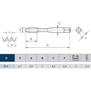 O Macho Máquina MA 04 x 0,7 DIN371 250/2 OSG é uma ferramenta de precisão desenvolvida para oferecer alta performance na roscagem de furos cegos, sendo a escolha ideal para operações que exigem acabamento de qualidade em materiais de cavaco longo. Fabricado em aço rápido com alto teor de vanádio, este macho alia durabilidade e resistência ao desgaste, garantindo um corte consistente e preciso mesmo sob condições de uso intenso. Seu design robusto é complementado por uma haste reforçada, cuja tolerância, classificada em H6, assegura que as dimensões permaneçam dentro dos padrões exigidos pela DIN 371, proporcionando resultados profissionais e confiáveis, com um passo de 0,7 e rosca grossa, o Macho Máquina MA 04 x 0,7 foi projetado para oferecer maior eficiência na remoção de cavacos, possibilitando a formação de roscas perfeitas em furos cegos. Seus três canais helicoidais, dispostos em canal helicoidal direito com ângulo de 35, promovem a evacuação rápida dos resíduos de material, reduzindo o risco de obstruções e contribuindo para a economia de tempo durante os processos de produção. O diâmetro da haste, medindo 4,5 mm, e o diâmetro do quadrado do macho, de 3,4 mm, foram meticulosamente definidos para otimizar a estabilidade e o desempenho da ferramenta durante a operação, garantindo um encaixe perfeito e uma roscagem eficiente, indicada para aplicações que demandam alta precisão, esta ferramenta é especialmente recomendada para o furo cego em materiais que produzem cavaco longo, onde o controle e a precisão são fundamentais para o sucesso da operação. É importante ressaltar que, para a utilização deste macho, é necessário adquirir separadamente uma broca com diâmetro de 3,3 mm, garantindo assim uma combinação ideal para a roscagem de alta qualidade. Em resumo, o Macho Máquina MA 04 x 0,7 DIN371 250/2 OSG se destaca no mercado por sua robustez, precisão e eficiência, sendo uma ferramenta indispensável para profissionais que buscam resultados superiores em suas operações de roscagem.