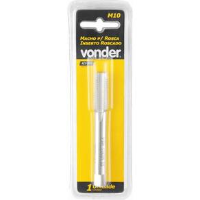 Marca: VonderConteúdo da Embalagem:1 Macho para inserto roscado M10Destaques e diferenciais:Fabricado em aço HSSAplicações e dicas de uso:Utilizado para refazer roscas em metal, para aplicação do inserto M10Características Técnicas:Medida da rosca do macho mm : 12,1 mm Material do macho: AÇO RÁPIDO 4241 HSS Tipo da rosca do macho: MA / MG - Milímetro rosca grossa Tipo do canal do macho: Canal reto Marca: Não Informado Ean: 7893946663940