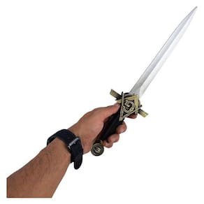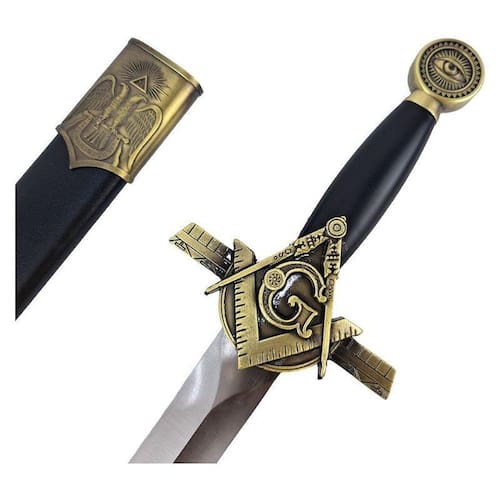 Maçônica Esquadro Compasso Símbolo Dourado Simples Características principais: Bainha revestida de material sintético Completamente decorativo Produto Temático Rico em detalhes Ótima peça para decoração ou coleção Medidas: Comprimento Total: 38 cm Lâmina: 23 cm Cabo: 10 cm Espessura da lâmina: 3 mm Peso : 280 g Peso com Bainha: 360 g Incluso: 1 Este produto não é afiado, apenas para fins decorativos/Cosplay. Marca: Não Informado