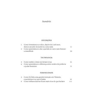 “Por que presumimos que clavas e lanças foram nossas primeiras ferramentas? Isso nos faz comprar a ideia de que a força motriz da invenção humana está de algum modo ligada ao impulso de dominar o mundo ao redor. Quando as mulheres foram excluídas da narrativa, a humanidade se tornou outra coisa. [...] Uma das consequências mais graves do patriarcado é que ele nos faz esquecer de quem realmente somos.” O que a conquista da Lua tem a ver com sutiãs? Por que as malas de rodinhas não foram aceitas num primeiro momento? Por que carroças eram consideradas meios de locomoção femininos, mas carros a motor logo foram tidos como masculinos? Nesta obra provocadora, Katrine Marçal resgata invenções que foram diretamente influenciadas pela noção do feminino e do masculino, e discute a importância do gênero e como este influencia a nossa relação com as invenções em si, com o corpo e com a tecnologia, mostrando de maneira contundente que a engenhosidade e a inteligência das mulheres é exatamente o que pode vir a nos salvar. “Katrine Marçal deseja nada menos do que uma revolução na maneira como pensamos.”— The Times