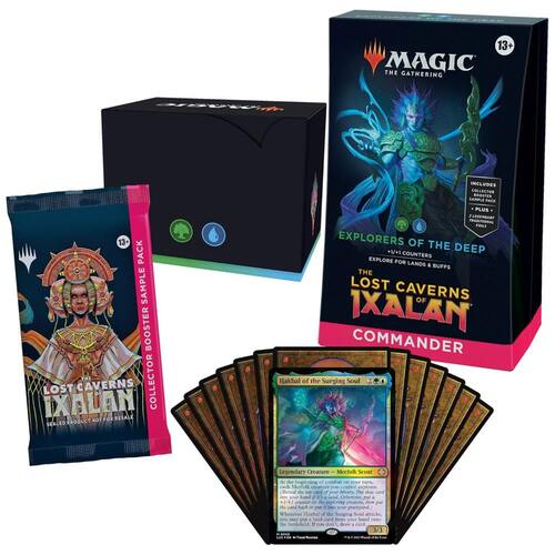 Prepare-se para explorar as profundezas das Cavernas Perdidas de Ixalan com o Deck de Comandante Exploradores das Profundezas! Este deck pronto para jogar irá levá-lo em uma emocionante jornada subterrânea, onde terras e tritões aguardam para fortalecer seu exército e mudar o rumo da batalha.