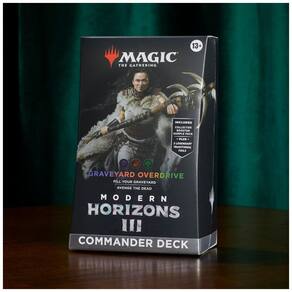 unte se a Disa, uma exploradora da Era do Gelo de Dominaria, e esmague seus inimigos em batalhas multijogador épicas com um deck BlackRed Green pronto para jogar imediatamente. O Modern Horizons 3 Graveyard Overdrive Commander Deck inclui 1 baralho de 100 cartas Magic que apresenta 15 cartas de Commander nunca antes vistas no Magic The Gathering, incluindo 2 cartas metalizadas de Criatura Lendária. Este implacável deck BlackRedGreen é projetado para encher seu cemitério, deixando os caídos alimentarem seu contra ataque. Além disso, cada baralho também vem com um Pacote de Amostra de Colecionador de 2 cartas contendo 2 cartas altborder do conjunto Modern Horizons 3 , incluindo 1 carta Rara ou Mítica Rara e pelo menos 1 carta Foil Tradicional. Este deck de comandante é completo com 10 fichas de dupla face, 1 rastreador de vida e 1 caixa de deck.