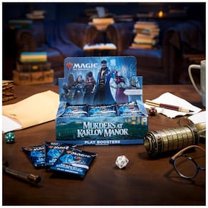 Uma série de assassinatos chocantes envolvendo alguns dos cidadãos mais poderosos de Ravnicaroit tem a cidade à beira do caos. Agora, detetives estão no caso... e você é um deles. Retorne ao plano favorito dos fãs de Ravnica em Assassinatos na Mansão Karlov, onde Magicilitis assume o gênero de mistério do assassinato. Este Murders at Karlov Manor Play Booster Box contém 36 Play Boosters, perfeitos para jogos limitados e diversão na abertura de pacotes. Cada Play Booster contém 14 cards de Magic: The Gathering e 1 card de Token/Anúncio, card de Suspect Punchout ou Art Card. (Cartões de Arte Regular encontrados em 30% dos pacotes. Cartões de Arte de Assinatura com estampa em folha em 5%.) Cada pacote inclui uma combinação de 1 a 4 cartas de raridade Rara ou superior, 3 a 6 cartas de Padrão, 6 a 9 cartas Comuns e 1 carte de Terreno (com Terrenos de Arte Completa em 33% dos pacotes). Um card de qualquer raridade é em Folha Tradicional. O card de Terreno também é em Folha Tradicional em 20% dos boosters, e um card especial de bônus da história de Magicilitis pode ser encontrado em 12% dos pacotes. Livro de regras não incluído.