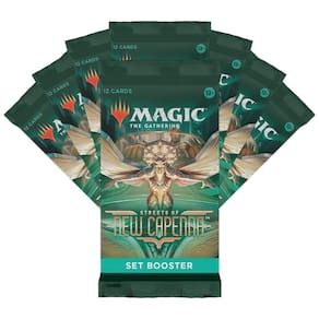 Cada Set Booster contém uma seleção cuidadosamente curada de 12 cartas de Magic, incluindo uma carta de arte deslumbrante e uma variedade de fichas, cartas de anúncio, cartas perfuradas ou cartas especiais da história do Magic, como "A Lista". Prepare-se para descobrir de 1 a 4 cartas de raridade Rara ou superior, acompanhadas por 3 a 7 cartas Incomuns, 3 a 7 Comuns e um terreno, com a chance de encontrar uma carta Tradicional ou Foil Dourada.