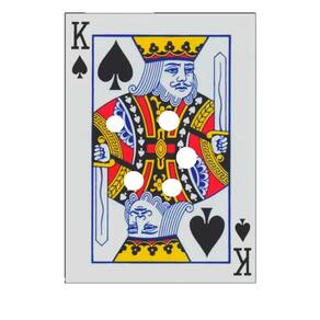 O produto vem com cartas padrão do baralho e algumas dessas cartas estão furadas para executar a mágica.