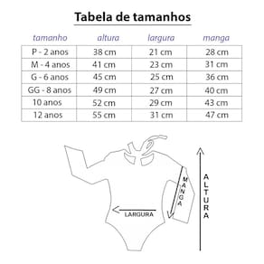 Tamanho 12 Altura 55cm Largura 31cm Manga 47cm Recomendado 10 a 12 anos