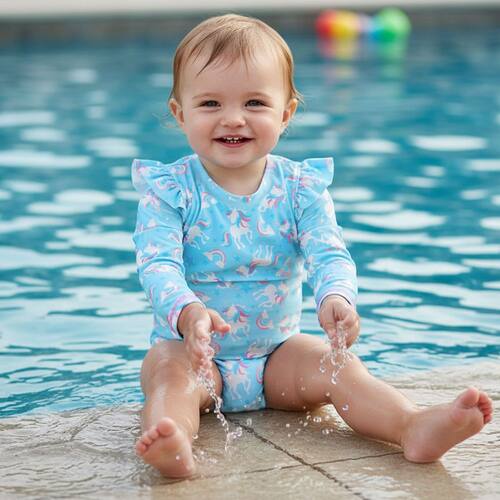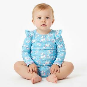 O Body Praia Infantil Manga Longa Unicórnios Azul Tip Top é ideal para as bebês e meninas pequenas aproveitarem a praia com todo estilo e segurança. Possui proteção solar FPS 50+ permanente, tem design moderno e confecção em tecidos leves. O tamanho 6-12M (G) possui abertura entrepernas, para facilitar a troca de fraldas.