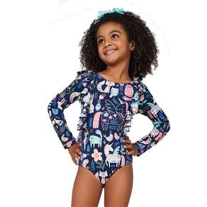 O Body Praia Folk da Tip Top é ideal para as pimpolhas poderem aproveitar a praia com todo estilo e proteção. Possui proteção solar permanente (FPS 50+) tem design moderno e confecção em tecidos leves. O charme fica por conta da estampa folk e babados nos ombros e laterais.