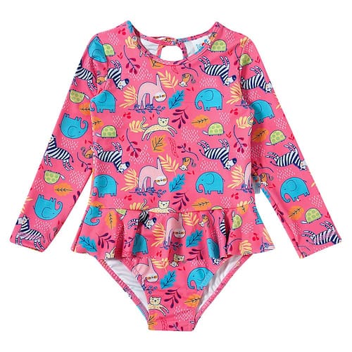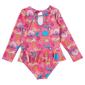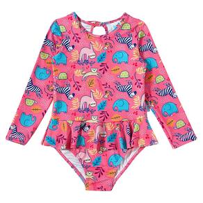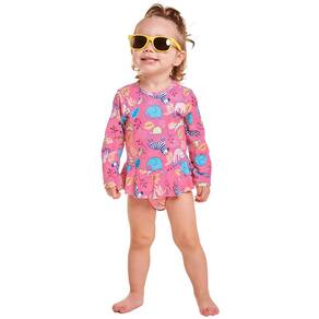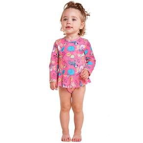 O Body Praia Safari da Tip Top é ideal para as pimpolhas aproveitarem a praia com todo estilo e proteção. Possui proteção solar permanente (FPS 50+) tem design moderno e confecção em tecidos leves. O charme fica por conta da sainha sobreposta. O tamanho G (6-12M) possui abertura entre as pernas.