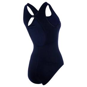 Maiô Speedo Clipback possui um corte grande seguindo uma linha retrô com fechamento nas costas por trava plástica (clipback), decote frontal bem alto e nas costas bem baixo, ideal para mulheres que preferem trajes mais discretos, que mostram pouco. Perfeito para pratica de hidroginástica e natação.