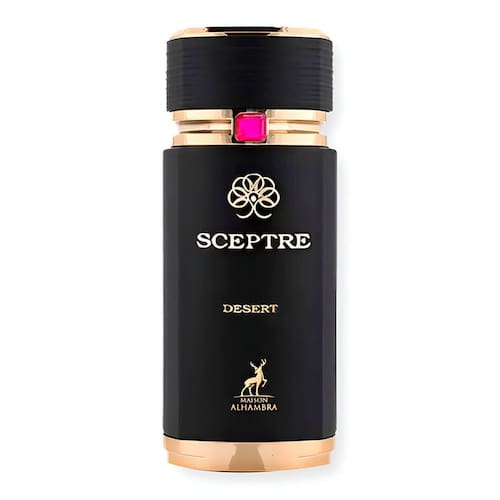 Maison Alhambra Sceptre Desert Eau de Parfum é uma fragrância frutada gourmand ousada e magnética, perfeita para indivíduos carismáticos que desejam uma presença misteriosa e rica como o calor do deserto. Lançada em 2022 pela casa árabe Maison Alhambra, esta essência unissex captura a grandiosidade das areias douradas ao entardecer, com uma abertura suculenta de morango e framboesa temperada por canela quente, evoluindo para um coração luxuriante de amora e caramelo suavizado por cedro refinado, e ancorada em uma base sensual de couro, baunilha cremosa, patchouli terroso e fava tonka fumada. Ideal para quem busca um perfume que une indulgência selvagem e sofisticação sutil, Sceptre Desert proporciona uma experiência olfativa viciante e duradoura, transformando o dia a dia em uma jornada de mistério e opulência, criando uma conexão emocional de ousadia e encanto irresistível.