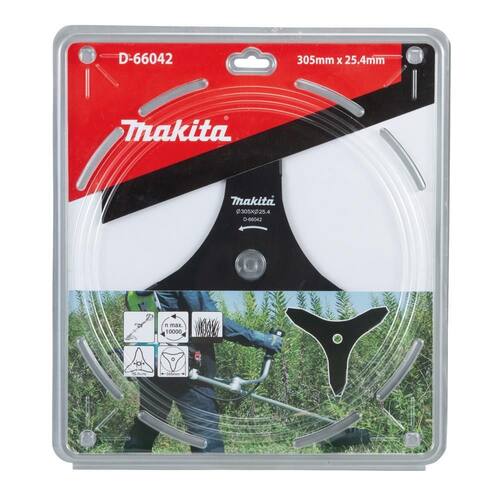 Makita D-66042 Lâmina 3 Pontas 305mmx25.4mm Para roçadeira Lâmina 3 pontas Para corte em arbustos espinhosos e vegetação rasteira emaranhada. A espessura de 3mm garante maior resistência à impactos