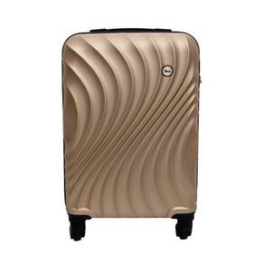 Malas para viagem fabricadas com superficie exterior de folhas plasticas sendo: 100%em abs rigido injetado , acompanhada de carrinho embutido fabricado dferro rodas simples que giram 360 graus, cadeado fixo e contendo: forro interno confeccionado em 100% de fibras sinteticas de nylon poliamida - um compartimento interno para roupas usadas e tiras internas para prender roupas, duas alcas de mao retratil de material rigido pp polipropileno rigido -tamanho: 24 - champagne -marca: ika -modelo: avalon - sendo: champagne