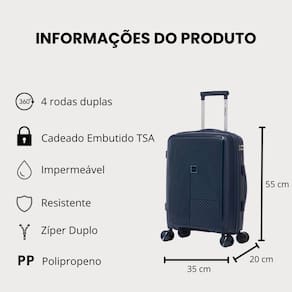Fabricada em polipropileno resistente, a mala garante durabilidade e proteção contra impactos.