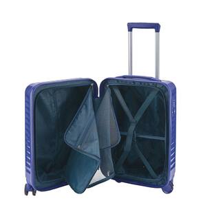 A alça de mão retrátil em borracha garante conforto durante o manuseio, enquanto o carrinho embutido facilita o transporte, tornando a mala uma companheira confiável para suas aventuras. Os acessórios em matching color, em sintonia com a cor Azul, adicionam um toque de estilo e coesão ao conjunto.