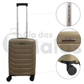 Mala Bordo de Viagem Polipropileno rodas 360 Polo King Cor: Champanhe Mala Bordo de Viagem Polipropileno PProdas 360 Polo King Executiva Produzido em material sintético ABS, destacando-se pela sua impermeabilidade, com forro em poliéster.