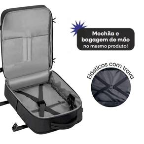 Versatilidade e praticidade em um único produto A Mochila de Bordo Executiva ML24656 foi desenvolvida para acompanhar você em todos os momentos - seja na correria do dia a dia ou em viagens rápidas de fim de semana. Com design moderno, elegante e funcional, ela pode ser Utilizado como mochila tradicional e, com um simples ajuste no zíper expansível, se transforma em uma mala de bordo compacta e espaçosa. Ideal para quem busca praticidade sem abrir mão do estilo Seu compartimento principal possui abertura total estilo mala, facilitando tanto na hora de arrumar quanto para encontrar seus itens com facilidade. Internamente, conta com elásticos com trava que ajudam a manter a bagagem organizada e firme durante o transporte. Para o dia a dia, ela oferece conforto e segurança: alças de costas acolchoadas e reforçadas, costado macio, alça carona para encaixar no puxador da mala e alça lateral para manuseio fácil em qualquer situação. Além disso, o compartimento traseiro exclusivo e acolchoado protege seu notebook e eletrônicos com máxima segurança. Na parte externa, possui dois bolsos frontais com zíper e um bolso superior discreto e de fácil acesso - perfeito para armazenar documentos, celular ou passagens. Conta ainda com fitas laterais de compressão, que ajustam o volume da mochila conforme a carga transportada. Dimensões aproximadas: Fechada: 43x30x18 cm Expandida: 44x30x25 cm A escolha inteligente para quem precisa unir mochila e bagagem de mão em um único produto