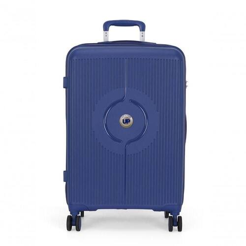 Bolso interno com zíper Forro em poliéster Alça retrátil Rodas duplas com giro 360 Cadeado embutido com segredo Abertura lateral com zíper personalizado Elástico interno Design em alto relevo com logo em metal UP4You Divisória interna com fechamento em zíper