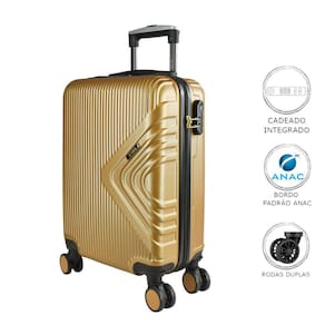 - Malas em ABS, material de alta qualidade. - Cadeado acoplado. - Rodas Duplas com Giro 360º - Elástico interno e divisória interna com zíper.