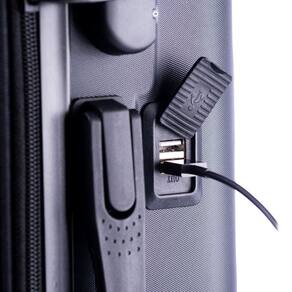 Para além dos compartimentos dos seus pertences, a mala armor possui duas entradas USB para plugar dispositivos via acesso interno. Essas entradas funcionam com o auxílio de um carregador portátil plugado através do interior da mala. Com essa ferramenta o usuário pode carregar o smartphone pelas entradas USB disponíveis na lateral sem a necessidade de segurar o carregador, deixando as mãos livres para usar o celular ou ler um livro enquanto espera o embarque, por exemplo.