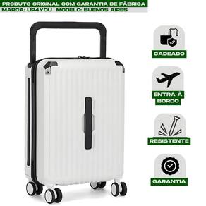Material: ABS de alta durabilidade Alça: Confortável alça de mão frontal e alça retrátil com botão de liberação rápida Segurança: Cadeado embutido com combinação numérica para máxima segurança Mobilidade: Rodas multidirecionais com giro 360 para uma movimentação suave Organização: Bolso interno com zíper e cintas elásticas para manter tudo no lugar Capacidade: Amplos 38 Litros Marca: UP4YOU Modelo: Buenos Aires