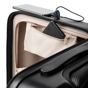 - Abertura frontal com ziper para acesso ao interior da mala;