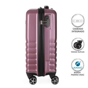 Garantia de 3 meses contra defeitos de fabricação, de acordo com as normas do fabricante. Mala de Bordo Pequena para Viagem em Abs Ika Flex Cadeado Integrado Rodas Duplas 360 Rosê