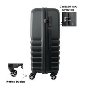 Malas em ABS Flexível, material de alta qualidade. Cadeado acoplado na mala. Rodas Duplas com Giro 360º Elástico interno e divisória interna com zíper. Mala de Bordo aprovada e testada no gabarito oficial dos aeroportos.
