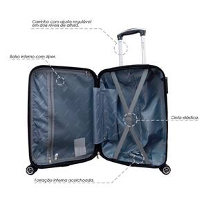 MALA DE VIAGEM RÍGIDA ABS DE BORDO PEQUENA GIRO 360° DE MÃO PADRÃO ANAC COM CADEADO CINZADescrição:A Mala de Viagem Rígida Pequena Kangur, na cor cinza, é a companheira perfeita para suas viagens. Fabricada em ABS resistente, esta mala oferece proteção e segurança para seus pertences. Com rodas que giram 360°, ela garante mobilidade sem esforço, sendo ideal para levar a bordo, conforme regulamentação ANAC.Destaques:Estrutura: Rígida e arredondada, proporcionando durabilidade e design modernoZíper: Com furo passante, permitindo maior segurança ao usar cadeadosRodinhas: 4 rodas giratórias 360°, para uma movimentação suave em qualquer direçãoCadeado: Acoplado com senha, para maior segurançaAlça de Mão: Retrátil e superior, facilitando o manuseioSuportes Laterais: 4 suportes emborrachados, proporcionando estabilidade quando a mala é colocada de ladoPuxador Telescópico: Com botão liberador para regulagem de altura, ajustando-se à sua necessidadeInterior:Forro: Estampado, garantindo um toque de elegânciaOrganização: Elástico para prender roupas, porta documentos e separador de roupas íntimas, mantendo tudo em ordemFicha Técnica:Dimensões da Mala P: 55 cm x 35 cm x 24 cmCor: CinzaMaterial: ABS resistente Marca: Guimp