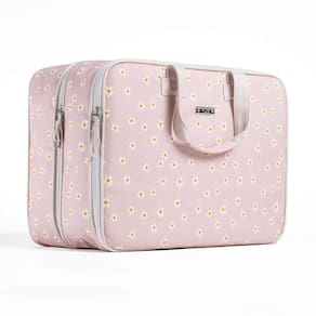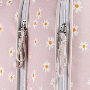 - Abertura superior com zíper duplo e espaço amplo para roupinhas e acessórios