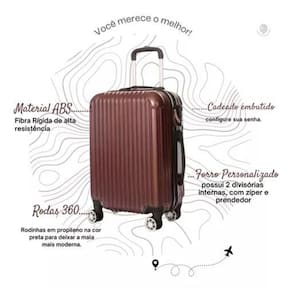 Mala de viagem 10kg cores novas com rodinhas 360 Mala 10kg: 20 vinho Mala 10kg: lilás 26 As malas mais lindas do momento. Esse lançamento foi pensando especialmente para quem costuma viajar bastante e que não abre mão de uma mala prática, versátil e cheia de design, claro a mala blacklions é composto por malas tamanho padrão anaac. Ou seja, essas malas são super eficazes em todas as suas necessidades, não importa qual seja a ocasião. Investimento perfeito para quem ama conhecer lugares novos e está sempre pensando na próxima viagem. só as características e composição desta mala incrível: - material: abs - forrada completamente - cintas elásticas fixadoras de roupas e pertences frágeis - divisória de compartimento em zíper para maior organização da bagagem - amplo espaço interno - resistente à água - 4 rodas duplas revestidas em silicone que realizam o giro 360 - alça superior emborrachada - alça lateral emborrachada - carrinho em alumínio com regulagem de altura - fecho em zíper duplo - material resistente e leve produzido com todo o controle de qualidade da marca 1 - pergunta: quantas malas vem nesse kit Resposta: 1 mala de 10 kilos 2 - pergunta: qual é a capacidade dessa mala Resposta: 1 mala de bordo de ate 10kg que vai a bordo e não precisa despachar. 3- pergunta: a mala de zíper expansivo Resposta: todas as malas tem zíper expansivo que aumentam de 2 a 3 cm a capacidade da mala. 4- - pergunta: esse produto tem Resposta: sim, conte com a de 3 meses do próprio fabricante. 5 - pergunta: essa mala tem cadeado Resposta: sim, possui cadeado nela e você consegue codificar o código da sua preferencia. 6- pergunta: as rodas são dupla e tem giro de 360 Resposta: sim todas as nossas malas blacklions vem com roda dupla removível e gira em até 360. Material: abs 4 rodas Carrinho embutido regulável Alça superior Fechadura Textura micro diamante Interno: interior totalmente forrado em poliéster Cinta elástica cruzada com trava Bolso interno Tamanho pequena Obs: o produto pode ter alguns pequenos cm de variação de acordo com fornecedor. do vendedor: 1 meses Marca: Não Informado