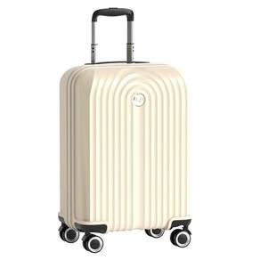 A mala é confeccionada em ABS, um material leve e resistente, e conta com detalhes em alto relevo com o logo da UP4You em metal. O interior é forrado em poliéster e possui uma divisória com zíper, elástico interno e um bolso adicional com zíper para organização.