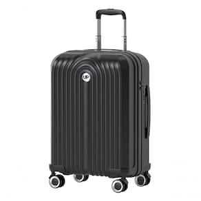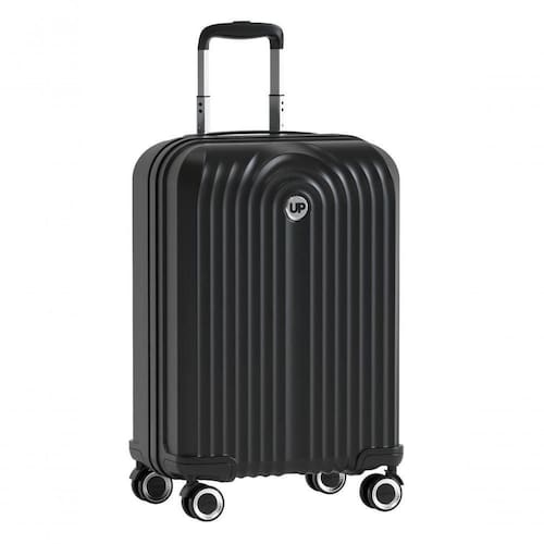 A mala é confeccionada em ABS, um material leve e resistente, e conta com detalhes em alto relevo com o logo da UP4You em metal. O interior é forrado em poliéster e possui uma divisória com zíper, elástico interno e um bolso adicional com zíper para organização.