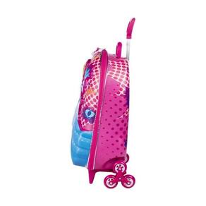 Especificações: - Material: 80% EVA, 20% Poliéster - Medida: 50cm x 20cm x 26cm - Peso Máximo Suportado: até 05 Kilos - Com Rodinhas: Sim 03 de cada lado - Interior dividido em 2 compartimentos - Estrutura Rígida - Capacidade: 20 Litros - Alça Telescópica Retrátil - Peso: 1250 gramas - Tema: Princesa Cinderela 3D - Cor: Rosa