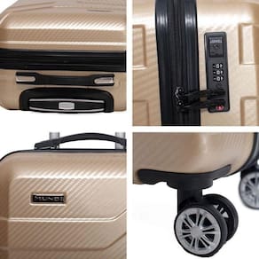 Mala Viagem Média 23kg 360 Graus Rigida Mundi 1901Mala Média 24 até 23 kgRodinha Dupla com giro 360 grausConfeccionada em ABS texturizadoAlça de MãoCarrinho com dois níveis com ferragem em metalPossui Cadeado TSAParte interna com forro em Nylon personalizadoBolso interno telado e prendedor em XMedidasAltura 62 cmLargura 39 cmComprimento 25 cm