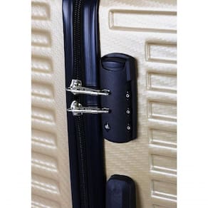 Policarbonato ultra resistente com memória de forma Cadeado embutido com segredo numérico Alça superior personalizada com logo Expansão de até 30% no tamanho 28 Apoio lateral para pendurar acessórios Rodas duplas removíveis com rotação 360 Garantia vitalícia para de fabricação