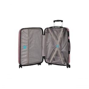 Material resistente em ABS com acabamento texturizado Rodas duplas com giro 360 (modelo P com rodas removíveis) Cadeado embutido com segredo Forro interno personalizado e funcional Logo em metal com design sofisticado Alça superior com suporte Apolo para pendurar bolsas e acessórios Garantia de 2 anos contra defeitos de fabricação