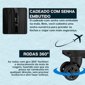 O cadeado com senha vem embutido na mala. Nele, você cadastra uma senha