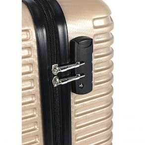 Policarbonato ultra resistente com memória de forma Cadeado embutido com segredo numérico Alça superior personalizada com logo Expansão de até 30% no tamanho 28 Apoio lateral para pendurar acessórios Rodas duplas removíveis com rotação 360 Garantia vitalícia para de fabricação