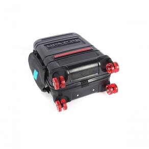 Bolso interno com zíper Bolso lateral organizador removível (para os modelos P) Forro personalizado em poliéster Alça retrátil Rodas duplas de skate com giro 360 Cadeado embutido Abertura lateral com zíper personalizado da marca Elástico interno Design premium Logo em metal resinado Divisória interna com fechamento em zíper personalizado