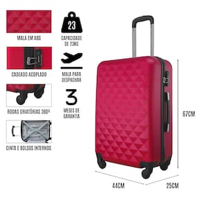 - Mala rígida em fibra ABS tamanho média (23kg);